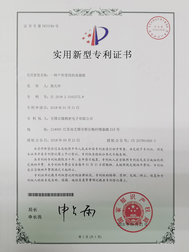 一種戶外使用的承載板實用新型專利證書