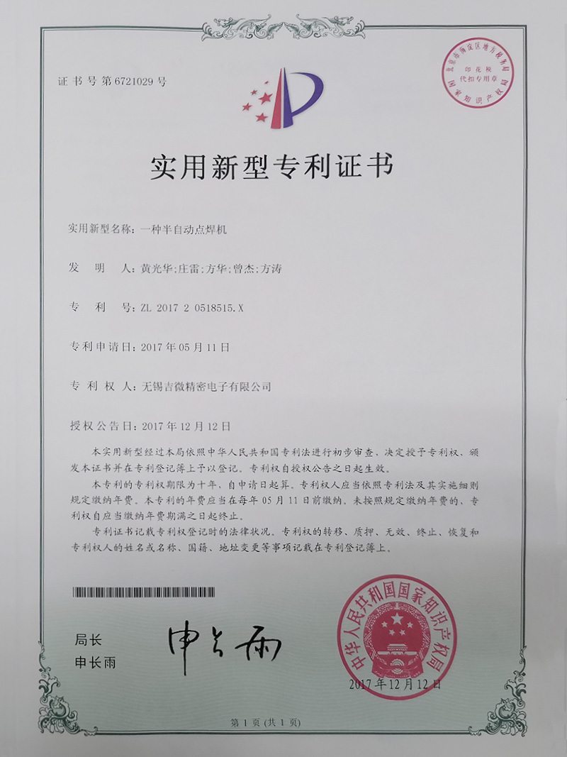 一種半自動點(diǎn)焊機(jī)實(shí)用新型專利證書